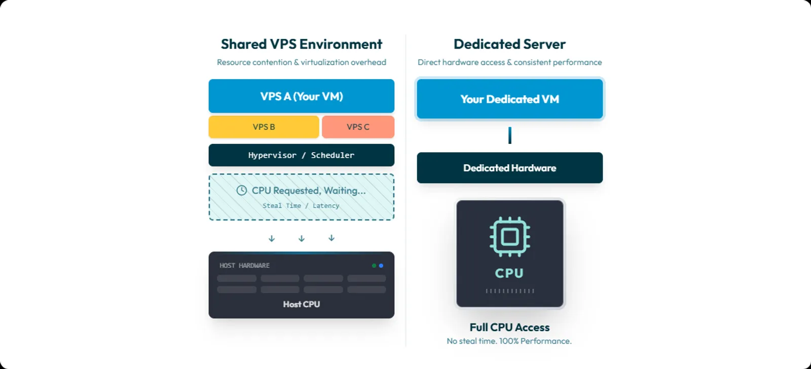 - Dedicated hardware can be the simplest fix because it removes shared-host CPU scheduling as a variable.