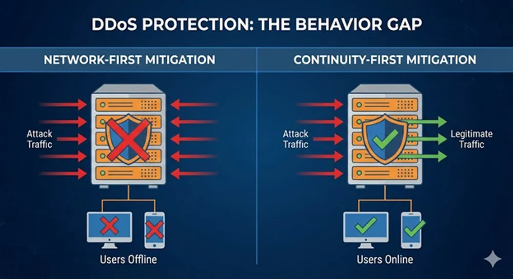- Mitigation that protects the network first: the provider stays healthy, but your service may still degrade.